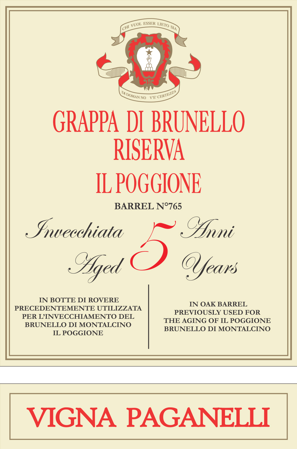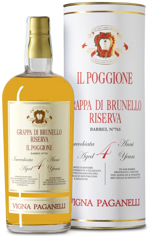 Grappa di Brunello Riserva Vigna Paganelli is the result of artisanal batch distillation of fresh pomace from Sangiovese grapes sourced in the Paganelli vineyard.
